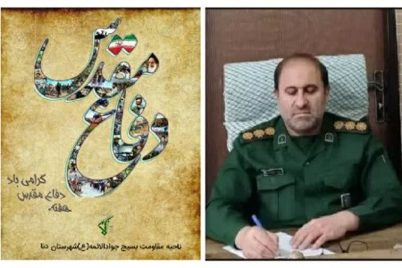 - ● پیام تبریک فرمانده ناحیه مقاومت بسیج جوادالائمه(ع) دنا به مناسبت هفته دفاع مقدس