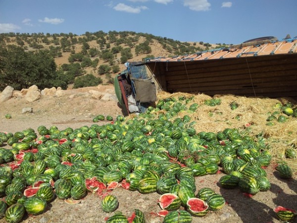 این کامیون که حامل چندین تن هندوانه بود در سراشیبی منتهی به پل کتا در شهرستان دنا واژگون شد.