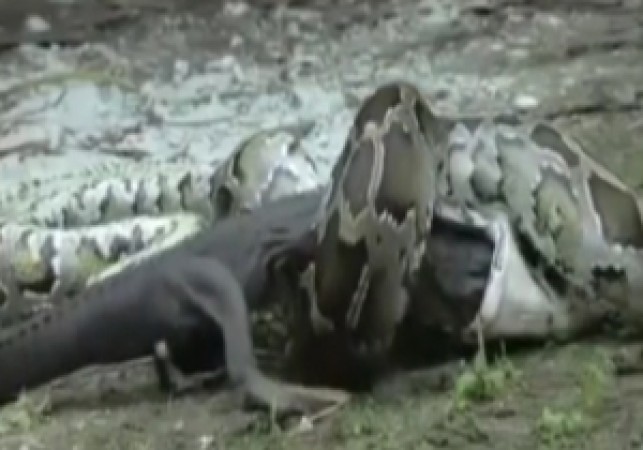 جدال مار پیتون غول پیکر و تمساح + فیلم
