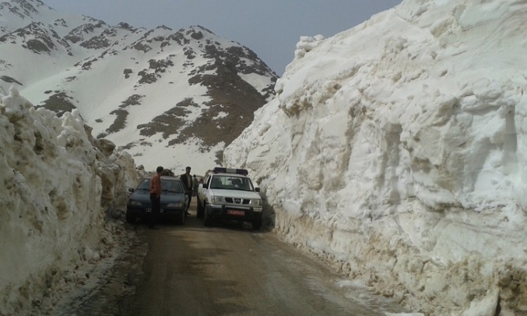 گردنه بیژن سی سخت با دیواره های چهار متری برف