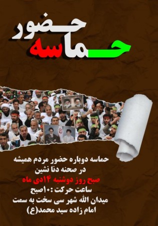 محل تجمع مردم انقلابی و ولایتمدار در شهر سی سخت، میدان الله این شهر به سمت امامزاده سید محمد(ع) بوده و به این وسیله آحاد مردم با خروش انقلابی خود از تحرکات اخیر فتنهگران اعلام بیزاری خواهند کرد.